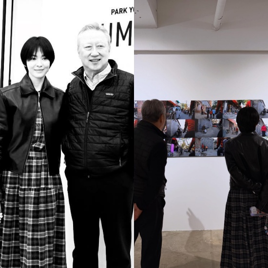 공개된 사진 속 송혜교는 박용만 전 회장의 사진전에 찾아간 모습이다. 그가 박 전 회장과 나란히 서서 찍은 사진은 마치 부녀처럼 다정한 분위기를 풍겼다. 이어 박 전 회장이 직접 찍은 사진들을 함께 관람하는 모습이 담기기도 했다.