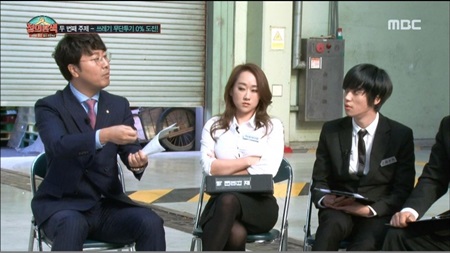 퓨어킴은 이날 오피스룩을 입고 등장했는데, 어마어마한 볼륨감에 상의 셔츠 단추가 터질 듯 해 눈길을 끌었다. 또한 퓨어킴은 요염하게 다리를 꼬기도 해 남성 출연자들의 시선을 사로잡았다.