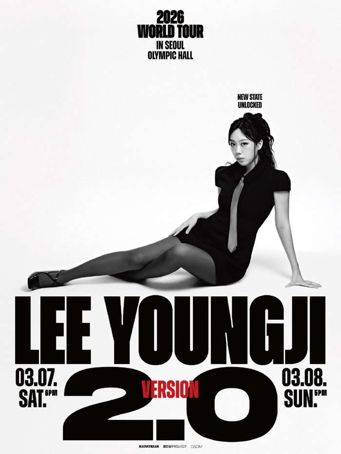 이와 함께 공개된 세 번째 투어 ‘2026 LEE YOUNGJI WORLD TOUR <2.0>’ 공식 포스터는 흑백의 강렬한 대비 속에서 한층 성숙해진 이영지의 비주얼을 담아내며 팬들의 시선을 단숨에 사로잡았다.
