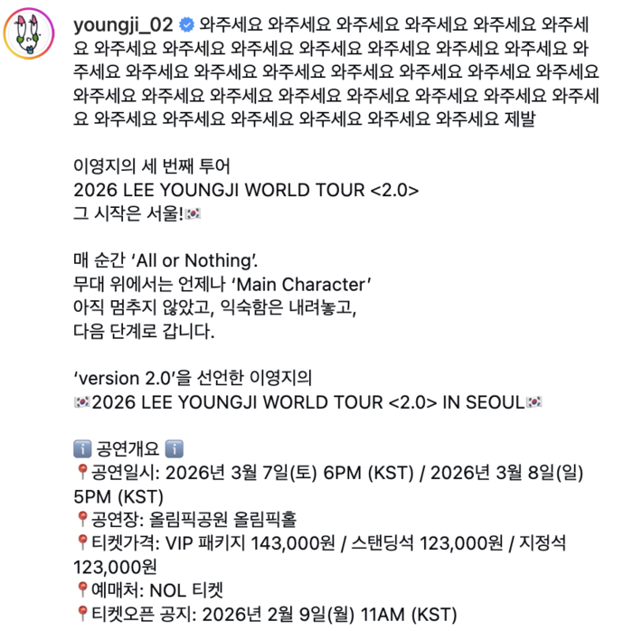특히 이영지는 이번 투어의 타이틀을 ‘Version 2.0’으로 명명하며 “익숙함은 내려놓고 다음 단계로 가겠다”는 포부를 밝혔다.