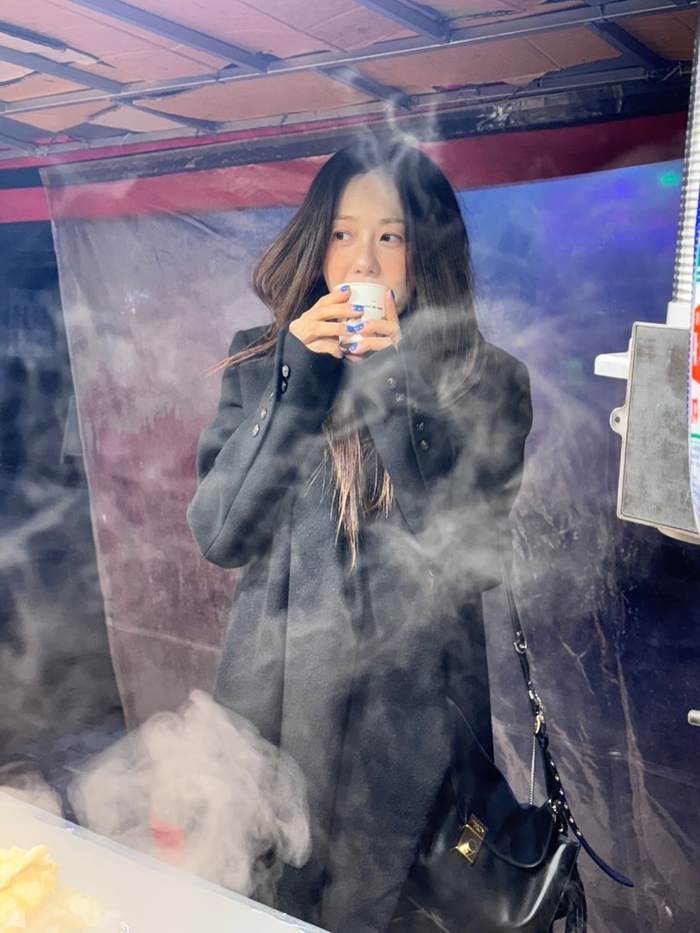 고현정은 화장기 없는 수수한 얼굴임에도 불구하고 투명한 피부와 특유의 우아한 분위기는 숨길 수 없었다. 고현정은 김이 모락모락 피어오르는 종이컵을 두 손으로 감싸 쥐고 어묵 국물을 들이키며 행복한 미소를 지어 보였다.