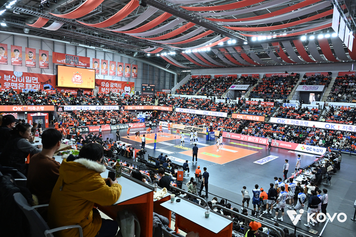 ‘만원 관중’ 속에 OK저축은행은 전광인이 14득점에 공격 성공률 61.54%를 기록했다. 외국인 선수 디미트로프가 공격 성공률 42.86%를 올렸으나 14득점으로 힘을 보탰다. 차지환도 13득점으로 공격의 한 축을 담당했다.