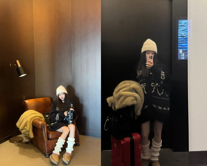 이날 공개된 사진 속엔 하얀색 모자를 쓰고 카페 의자에 앉아있는 이솔이 모습이 담겨있다. 추운 날씨에도 불구하고 짧은 하의에 니삭스를 매치한 모습이다.