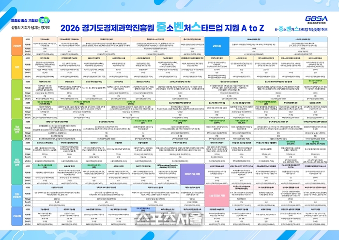 경과원은 이번 총람표를 통해 도내 기업이 자신의 상황과 성장 단계에 맞는 지원사업을 보다 전략적으로 활용하도록 유도했다. 기업은 정책 정보를 종합적으로 비교하며 경영과 기술개발에 집중할 수 있다. 지원사업 현황표’는 경기기업비서 배너존을 통해 확인할 수 있으며, 사업별 신청 일정과 요건은 각 담당 부서를 통해 안내받을 수 있다.