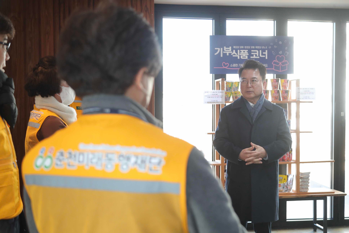 육동한 시장은 이날 사업 운영 공간을 둘러보며 물품 지원 절차와 이용 흐름을 살피고 현장 관계자들로부터 운영 현황을 보고받았다. 춘천시의 ‘그냥드림’은 단순한 물품 제공을 넘어 복지 사각지대를 발굴하는 연계형 지원 체계로 운영되고 있다.