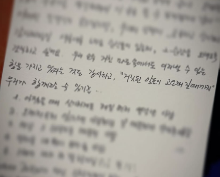 공연 후 받은 편지 내용도 공개한 그는 ‘우리 모두 거친 파도 속에서도 이겨낼 수 있는 힘을 가지고 있다는 것도 감사하고 거짓된 말들이 고요해질 때까지 우리가 함께 할 수 있기를’이라는 내용만 캡처해 눈길을 끌었다.