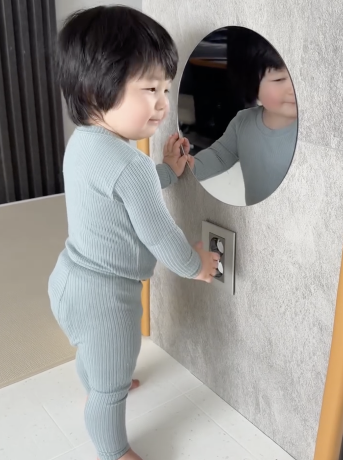 공개된 영상 속 하루는 거울 속에 비친 자신의 모습이 쑥스러운 듯 배시시 미소를 지으며 한참을 머물고 있다. 특히 민트색 내복을 입고 벽에 기대어 있는 하루의 올챙이처럼 볼록한 ‘D라인’ 배는 보는 이들의 웃음을 자아낸다.