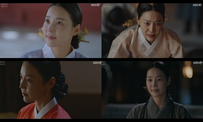 또 숙의 홍씨는 이열의 영혼이 깃든 홍은조가 소수의 세력으로는 패멸뿐이라는 우려 섞인 시선을 보내자 “그렇다 해도 싸웁니다. 우리의 끝이 죽음일지라도”라며 비장한 각오를 전했다. 한지혜는 자애로운 미소 뒤에 숨겨 둔 날카로운 발톱을 드러내며 어좌의 주인을 바꾸려는 대의를 절제된 연기로 완성해 냈다.
