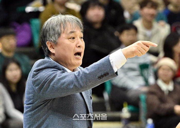 하나은행 이상범 감독이 9일 부천체육관에서 열린 2025-2026 여자프로농구 KB스타즈와 경기에서 선수들에게 작전 지시를 하고 있다. 2026. 2. 9.