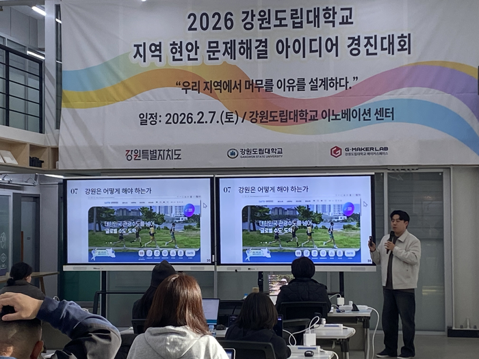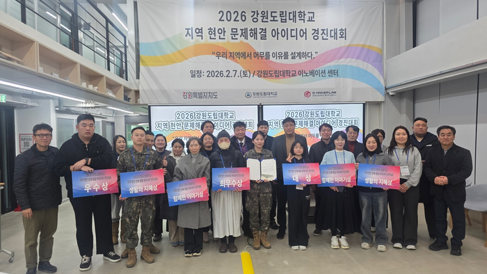 [스포츠서울ㅣ김기원기자]강원도립대학교(총장 최종균, 이하 대학)가 대학의 자원을 활용해 지역 현안의 실질적 해법을 모색하는 ‘지역 문제 해결 플랫폼’으로서의 행보를 본격화했다. 대학은 지난 7일(토) 교내 이노베이션 센터에서 「2026 지역 현안 문제 해결 아이디어 경진대회」를 성황리에 개최했다고 밝혔다. 이번 대회는 대학이 주도하여 지역 주민의 시각으로 현장 밀착형 정책 모델을 발굴하기 위해 마련됐다.