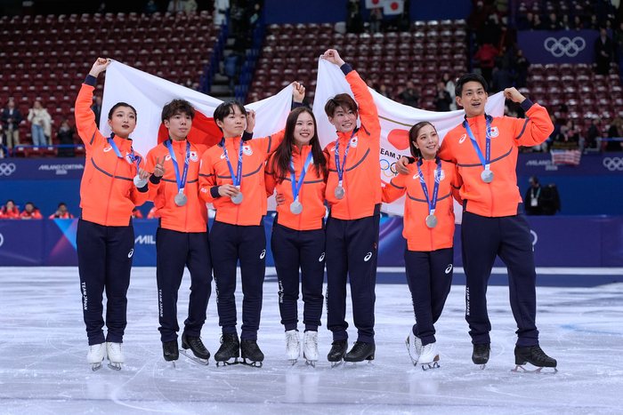 일본은 9일(한국시간) 이탈리아 밀라노 아이스스케이팅 아레나에서 열린 2026 밀라노·코르티나 동계올림픽 피겨 팀 이벤트에서 총점 68점으로 은메달을 따냈다. 금메달 미국(69점)에 딱 1점 부족했다.