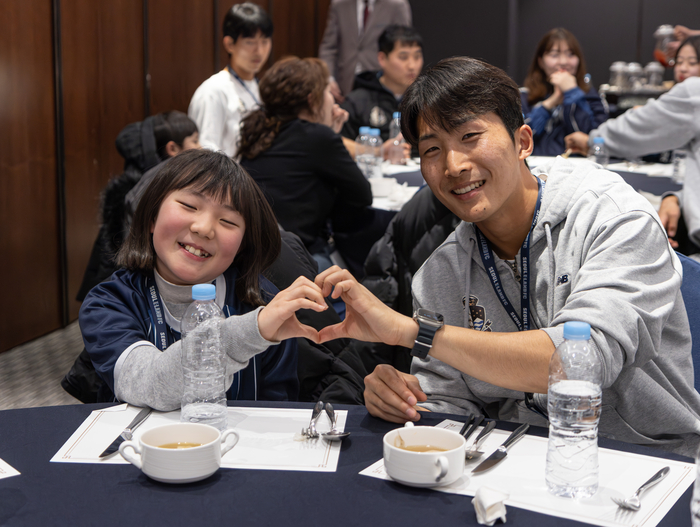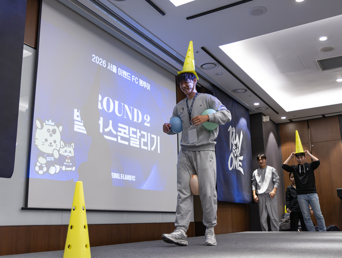 특히 ‘밸런스 콘 달리기’가 현장 분위기를 고조시켰다. 양 옆구리와 다리 사이에 풍선을 끼운 채 머리 위에 콘을 세우고 콘이 떨어지지 않도록 중심을 잡으며 반환점을 돌아오는 릴레이를 펼쳤다. 응원과 탄식이 교차했고, 웃음과 함성으로 가득 찼다. 1위를 차지한 팀에는 선수단 전원 친필 사인이 담긴 유니폼이 주어졌다.