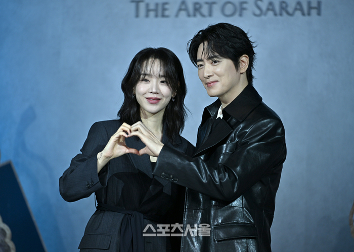신혜선과 이준혁이 10일 앰배서더 서울 풀만 호텔에서 열린 넷플릭스 시리즈 ‘레이디 두아’ 제작발표회에서 포즈를 취하고 있다.