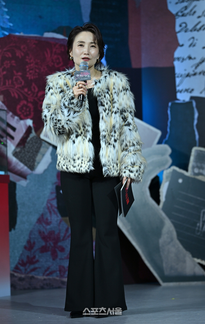 박경림이 10일 앰배서더 서울 풀만 호텔에서 열린 넷플릭스 시리즈 ‘레이디 두아’ 제작발표회 사회를 보고 있다.