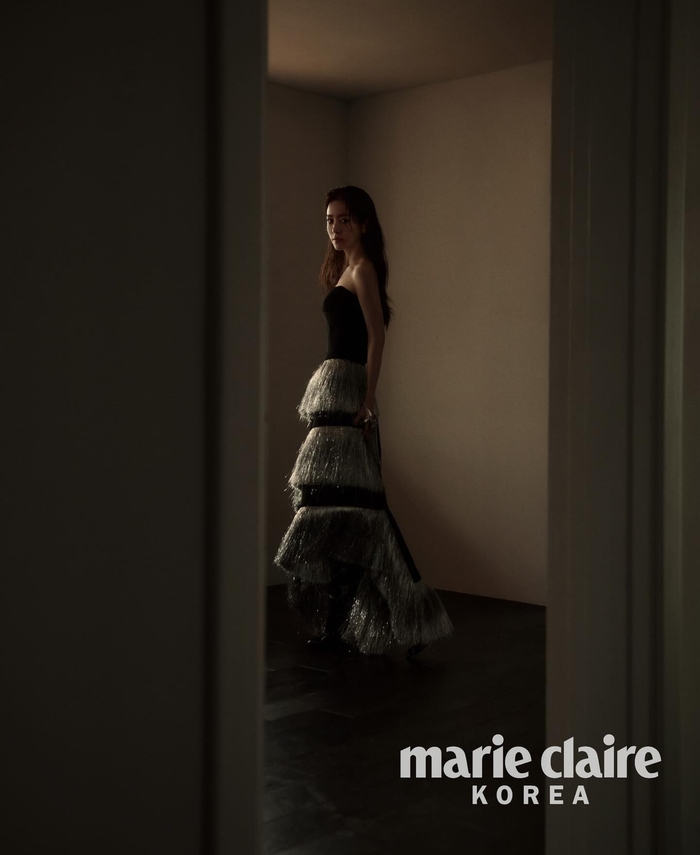 특히 과감하게 등을 드러낸 홀터넥 스타일의 의상과 실버 프릴이 돋보이는 드레스를 완벽하게 소화하며 성숙한 여인의 향기를 물씬 풍겼다. 젖은 듯한 헤어 스타일링과 깊은 눈빛은 몽환적이면서도 세련된 화보의 완성도를 높였다.