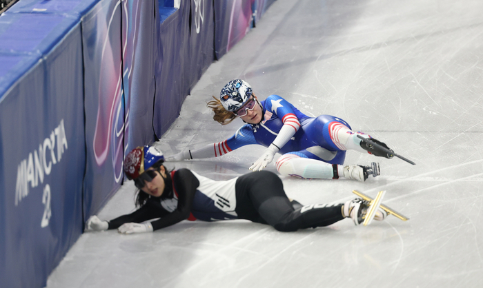 문제는 이 순간이다. 미국 선수가 넘어지며 트랙 위로 미끄러져 들어왔고, 김길리는 피할 수 없었다. 두 선수는 그대로 충돌하며 넘어졌다. 김길리는 포기하지 않았다. 곧바로 일어나 터치를 이어갔고, 한국은 레이스를 끝까지 완주했다. 그러나 흐름은 이미 끊겼다. 캐나다와 벨기에가 1, 2위로 결선에 올랐고, 한국은 3위에 머물렀다.