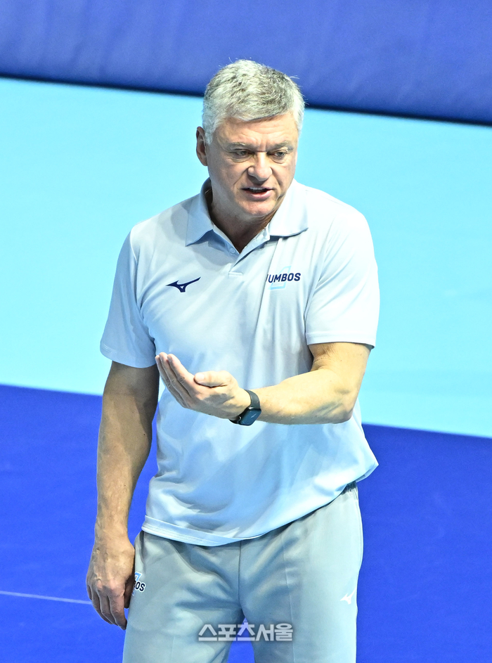 대한항공 헤난 감독이 10일 인천 계양체육관에서 열린 2025-2026 V리그 남자부 우리카드와 경기에서 코칭스태프와 이야기를 나누고 있다. 2026. 2. 10.
