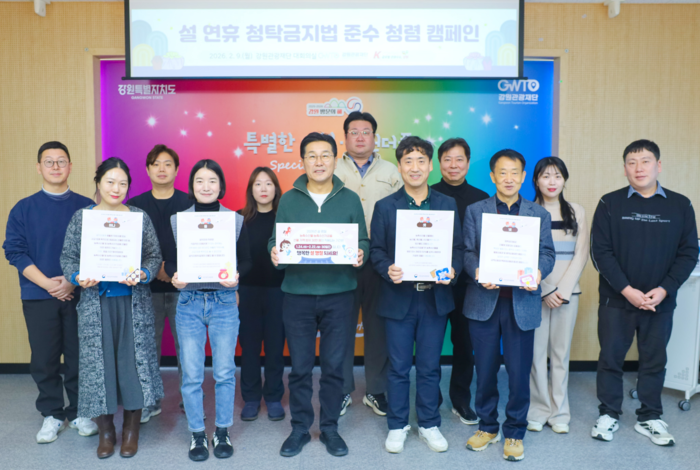 [스포츠서울ㅣ춘천=김기원기자]강원관광재단(대표이사 최성현)은 지난 9일 설 명절을 앞두고 공직사회의 청렴 문화 확산과 청탁금지법 준수 의식 제고를 위해 청탁금지법 준수 청렴 캠페인을 실시했다.
