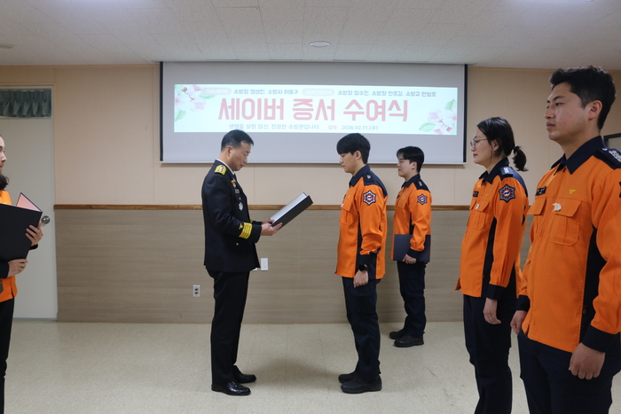 이번 수여식에는 서장을 비롯한 소방 관계자 10여 명이 참석한 가운데, 하트세이버와 브레인세이버 수상자 6명에게 증서가 전달됐다.