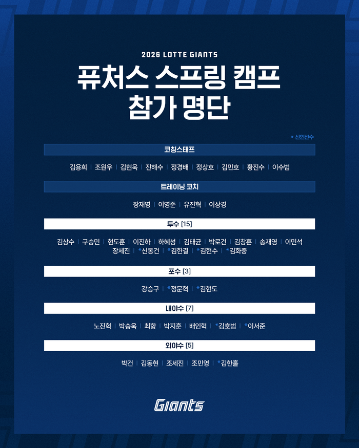 이번 캠프에는 김용희 퓨처스 감독을 비롯한 코칭스태프 12 명과 김상수, 구승민 등 투수 15명, 포수 3명, 내야수 7명, 외야수 5명 등 선수 30명이 참가한다.