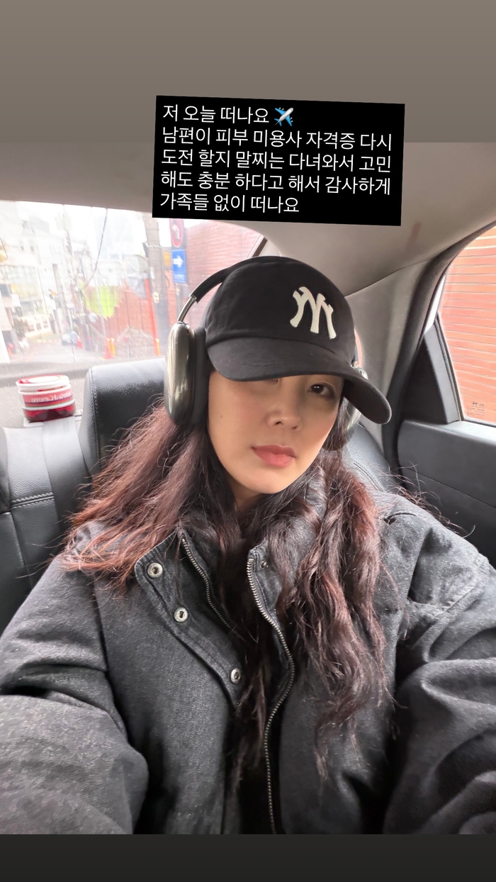 지소연은 11일 자신의 SNS를 통해 ”저 오늘 떠난다. 남편이 피부 미용사 자격증 다시 도전할지 말지는 다녀와서 고민해도 충분하다고 해서 감사하게 가족들 없이 떠난다“며 들뜬 마음을 전했다. 최근 쌍둥이 남매까지 출산하며 세 아이의 엄마가 된 그에게 이번 여행은 남편 송재희의 배려로 마련된 소중한 휴식이었다.