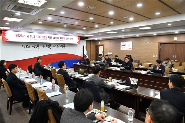 [스포츠서울ㅣ원주=김기원기자]원주시와 이전공공기관 간 상생 협력을 위한 ‘2026년 제1차 원주시·이전공공기관 협의체 정기회의’가 12일 원주시청에서 열렸다.