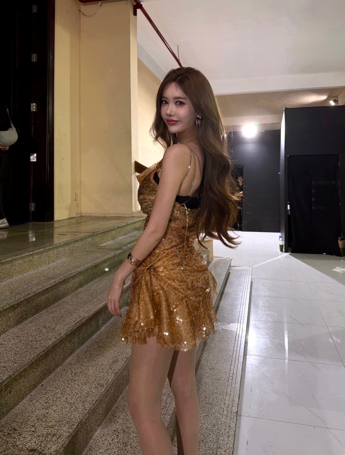 큐리는 12일 자신의 사회관계망서비스(SNS)에 “Gold”라는 문구와 함께 여러 장의 사진을 게시했다. 공개된 사진 속 큐리는 무대 뒷모습으로 보이는 공간에서 화려한 골드 시퀸 미니 드레스를 입고 눈부신 자태를 뽐내고 있다.