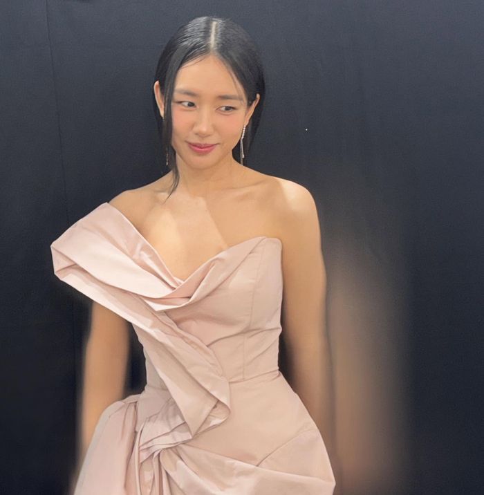이날 안은진은 화사한 파스텔 핑크 톤의 원숄더 미니 드레스를 선택해 우아하면서도 사랑스러운 매력을 발산했다. 특히 가녀린 쇄골 라인과 어깨선을 드러내며 시선을 사로잡았다. 차분한 로우 포니테일 헤어스타일로 단아한 분위기까지 더했다.