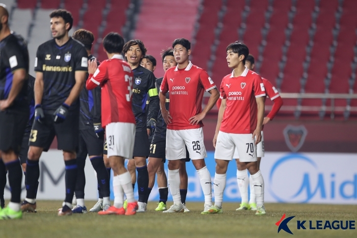 포항은 후반 2분 실점했다. 역습 상황에서 야마시타가 페널티박스 안에서 침착한 오른발 마무리로 골문을 갈랐다. 포항도 물러서지 않았다. 후반 9분 어정원의 크로스를 이호재가 헤더로 방향을 바꿨으나 골키퍼 선방에 막혔다.