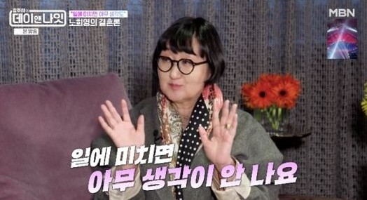 노희영은 14일 방송된 MBN ‘김주하의 데이앤나잇’에서 “결혼도, 이혼도 저는 둘 다 후회하지 않아요”라며 “전 남편은 참 좋은 사람이었다”라고 회상했다. 노희영은 결혼 13년 만에 이혼한 바 있다.