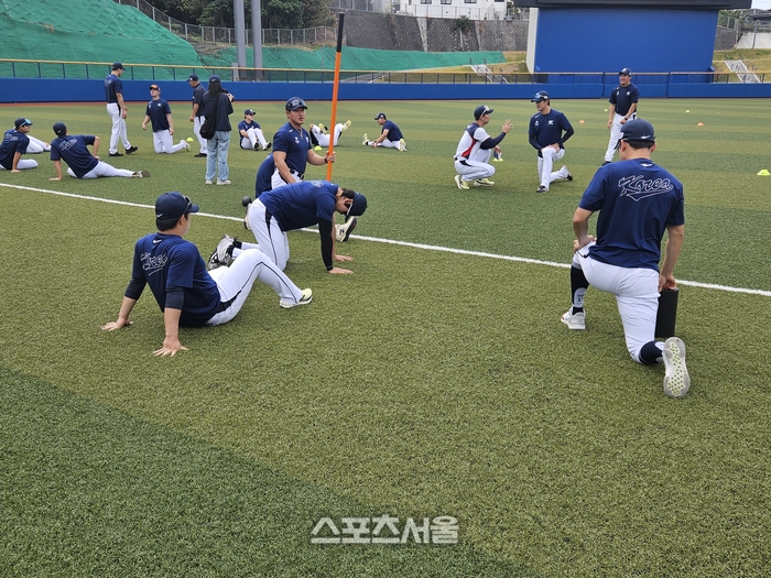류지현 김독이 이끄는 대표팀은 14~15일 이틀에 걸쳐 오키나와에 모였다. 16일 가데나 구장에서 첫 훈련을 진행했다. 22명이 모였다. ‘풀 멤버’는 아니다. 해외파가 와야 하고, 원태인 부상으로 갑하게 뽑힌 유영찬도 오고 있다.