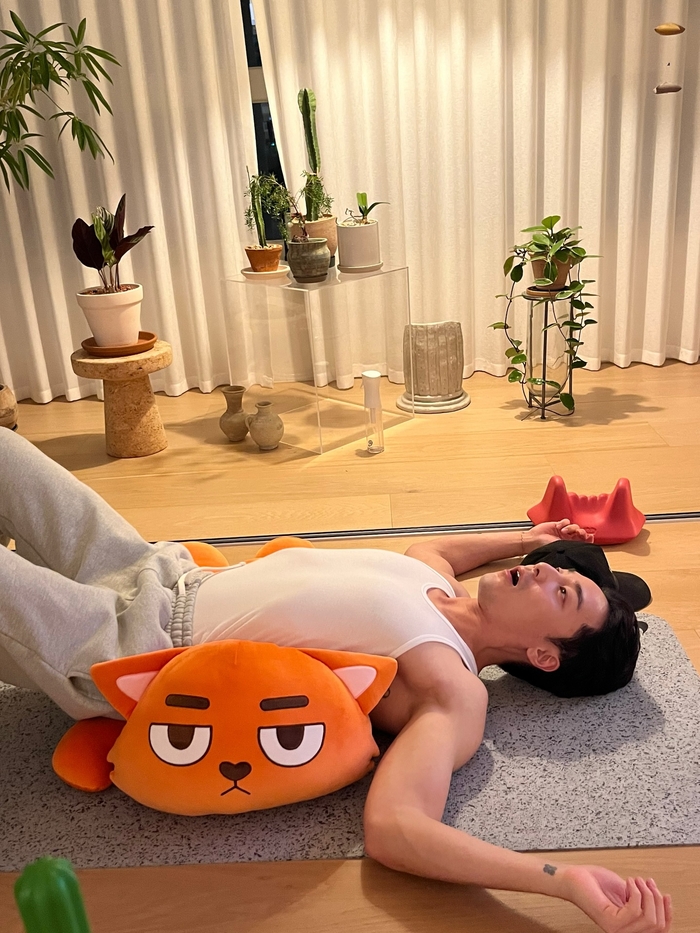 그런가 하면 요가 매트 위에서 ‘록스’를 허리에 받치고 시원하게 스트레칭을 하며 자기 관리 중인 모습을 보여주는가 하면, 혼술 중인 로이킴의 뒤를 든든하게 받쳐주는 ‘술친구’로 록스를 소개하며 남다른 애정을 드러냈다.