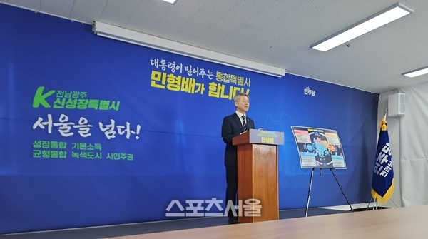 [스포츠서울∣조광태기자] 더불어민주당 민형배 의원(광주 광산을)은 19일 민주당 전남도당 브리핑룸에서 기자회견을 열고, 전남과 광주를 하나의 경제권으로 묶어 대한민국 성장의 새로운 중심지로 육성하기 위한 ‘전남광주 신성장 경제지도’를 공식 발표했다.