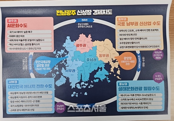 특히 서부권에‘전남광주전력공사’와 중남권에‘K푸드산업공사’설립을 핵심으로 하는 권역별 특화 전략도 밝혔다.