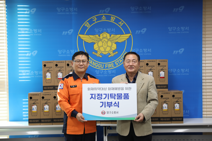 [스포츠서울ㅣ김기원기자]강원특별자치도 양구소방서는 19일 소회의실에서 화재취약대상 화재예방을 위한 지정기탁물품 기부식 행사를 열었다.