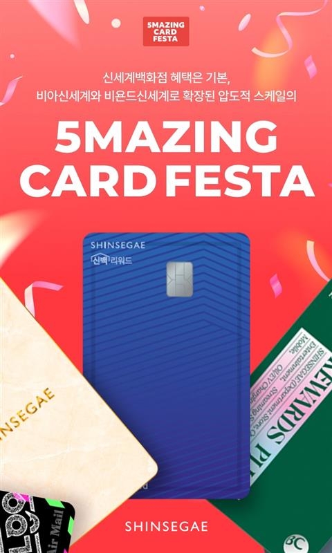 [스포츠서울 | 조선경 기자] 신세계백화점이 2월 19일부터 3월 2일까지 5개 제휴카드사(씨티·삼성·신한·하나·BC바로)와 ‘5메이징 카드 페스타’를 열고 풍성한 쇼핑 혜택을 선사한다고 밝혔다.
