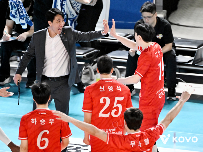 한국전력은 20일 대전충무체육관에서 열린 삼성화재와 진에어 2025~2026 V리그 남자부 맞대결에서 세트 스코어 3-1(25-17 25-23 23-25 26-24)로 승리했다.