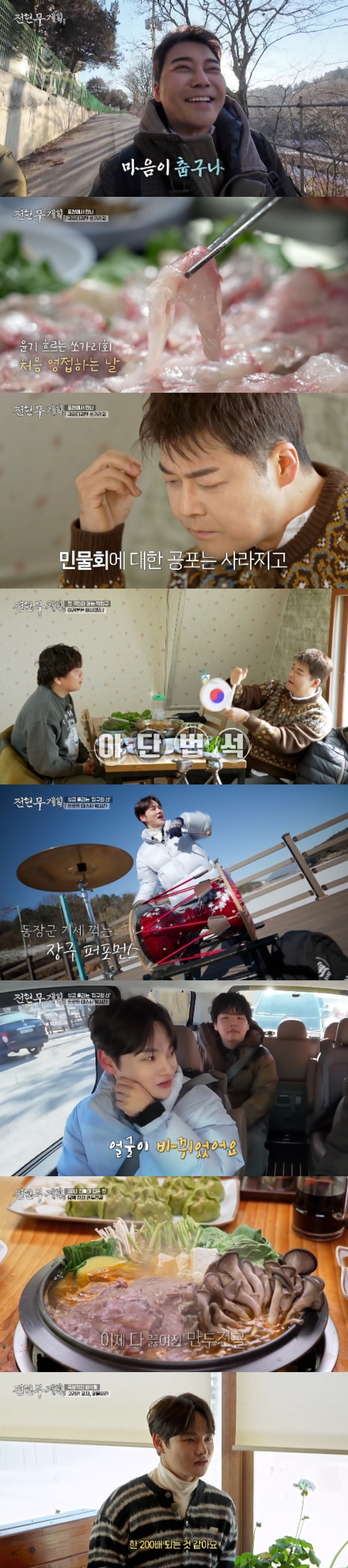 20일 방송된 본격 리얼 길바닥 먹큐멘터리 ‘전현무계획3’ 19회에서는 전현무, 곽튜브(곽준빈)와 ‘장구의 신’ 박서진이 포천에서 춘천까지 이어지는 ‘포춘’ 먹트립에 나선 하루가 공개됐다. 이들은 1급수 강에서 잡은 쏘가리회, 매운탕을 시작으로, 수도권 TOP5 만두전골, 파전 맛집, 전국 3대 탕수육 맛집까지 섭렵하며 꽉 찬 먹방과 토크를 완성했다.