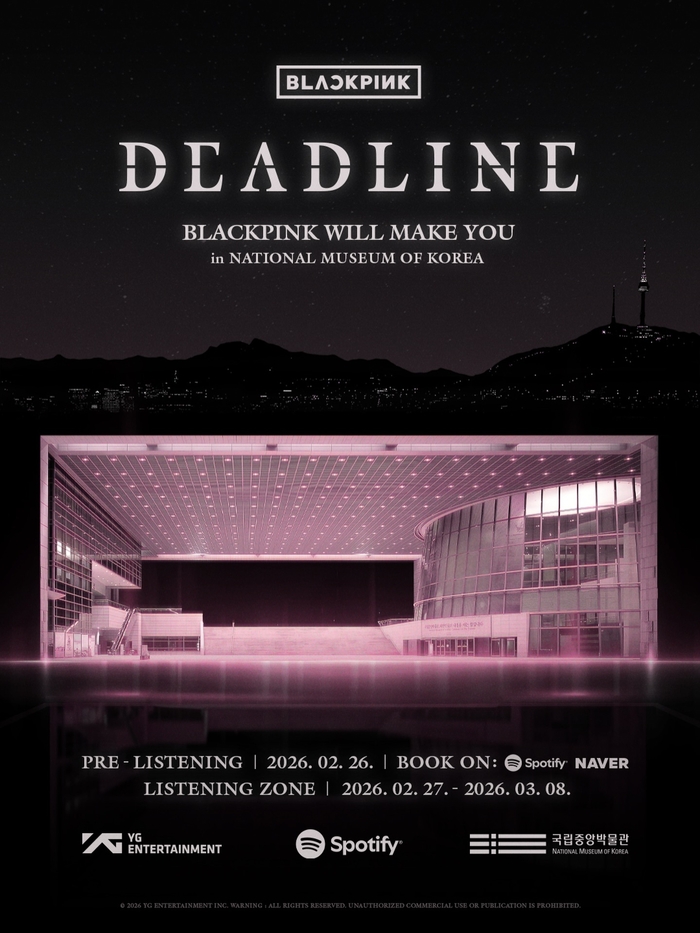 글로벌 오디오·음원 스트리밍 플랫폼 스포티파이가 힘을 보탠 특별한 협업으로 박물관 외관 핑크 라이팅, 멤버들이 참여한 대표 유물 오디오 도슨트 등이 마련됐다. 메인 로비인 역사의 길에서는 미니 3집 전곡을 들어볼 수 있는 리스닝 세션이 진행된다. 사전 세션은 예약 오픈과 동시에 모두 매진됐으며 발매 후 진행되는 사후 세션은 누구나 참여 가능하다. thunder@sportsseoul.com