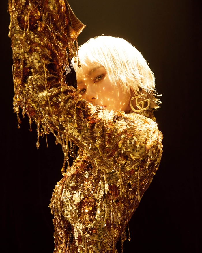 이번 화보에서 닝닝은 기존의 발랄하고 귀여운 이미지에서 벗어나 파격적인 금발 쇼트커트와 전신을 감싸는 화려한 골드 시퀀 드레스를 완벽하게 소화하며 한 편의 영화 같은 분위기를 연출했다.