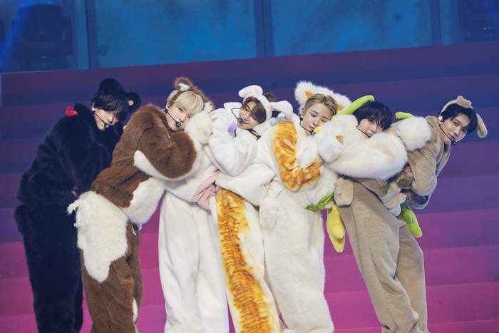 다음으로 귀여운 저주에 걸린 NCT WISH는 동물 의상을 입고 등장, 시즈니의 응원과 참여로 저주를 풀어가는 미션을 소화하며 현장을 유쾌한 웃음으로 채웠다. 멤버들은 속담을 몸으로 표현하는 게임을 시작으로, 공연장 곳곳을 오고 가며 순발력과 팀워크를 요구하는 다양한 미션을 통해 팬들과 가까이 호흡하는 시간을 가졌으며, 지난해를 휩쓴 파파야의 ‘내 얘길 들어봐’와 트와이스의 ‘TT’ 커버 무대를 연달아 선보여 깜찍한 매력을 극대화했다.