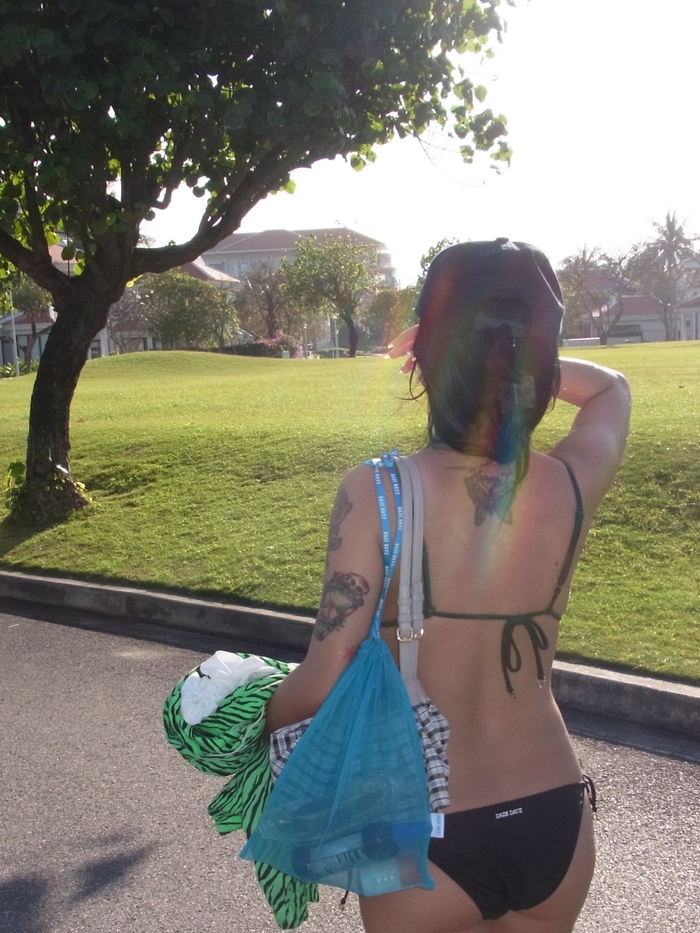 허니제이는 21일 자신의 SNS에 “바닷가 전세냄”이라는 글과 함께 다수의 사진을 게재했다. 공개된 사진 속 허니제이는 초록색 비키니 상의를 입고 다낭의 뜨거운 햇살을 즐기는 모습이다.