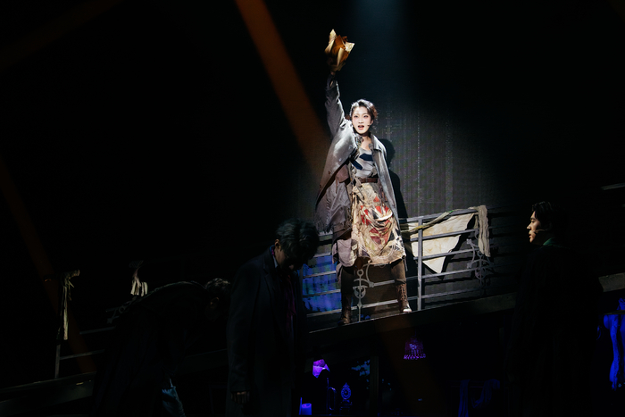 또 하나는 시작부터 끝까지 무대 전체를 감싸는 ‘태양’이다. 하지만 시시각각 변하는 색이 때론 차가운 달로 느껴져 혼란의 소재이기도 하다. 이에 대해 윤지우는 “‘메르소’를 압박하는 도구보단 구원이다. 넘버 ‘No way out’에서 ‘메르소’가 태양과 마주하고 공격받는 장면이 나온다. 록 음악의 빠른 비트에 빨려 들어가 숨을 제대로 못 쉰다. 이때 있는 힘껏 숨을 내쉬며 ‘돌 잘 굴렸구나’라고 말한다”라며 “떠오르는 태양을 보면서 어제도 지나갔다는 걸 느낀다. 마지막은 ‘그럼에도 살아내자’라는 메시지를 강하게 전한다. 구원의 시작인 것이다”라고 해석했다.