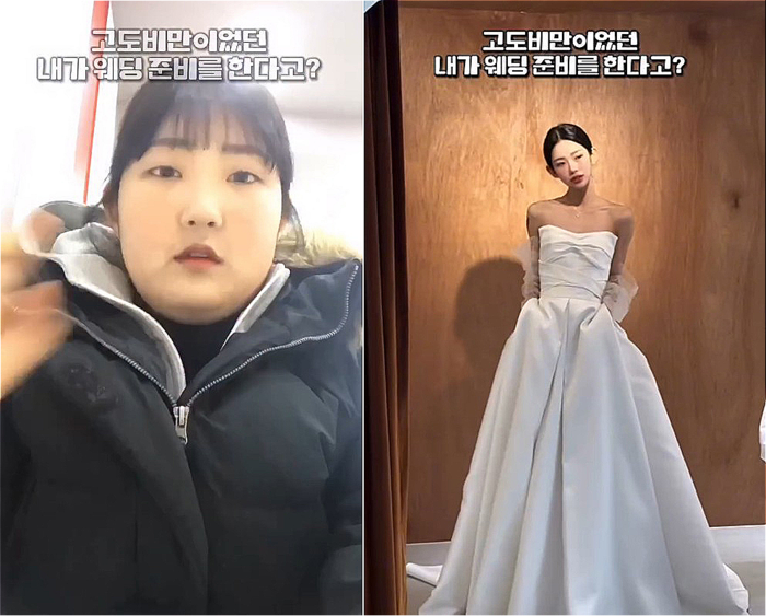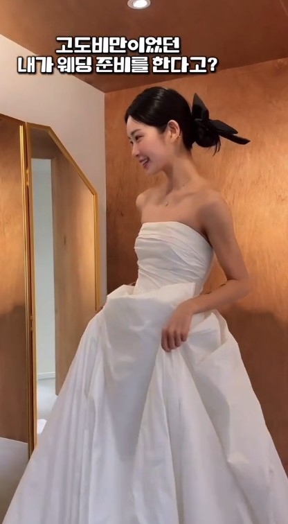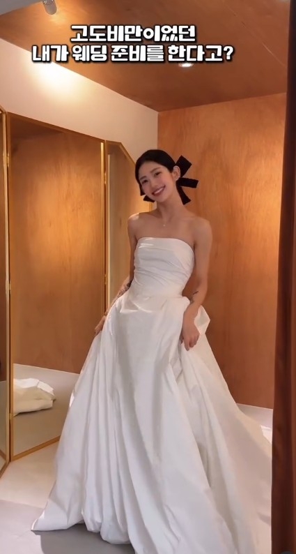 故 최진실의 딸이자 인플루언서 겸 모델로 활동 중인 최준희는 최근 자신의 SNS를 통해 과거 고도비만 당시의 모습과 함께 웨딩드레스 피팅 영상을 공개했다. 군더더기 없는 실루엣의 드레스를 입고 환하게 웃는 모습이다. 블랙 리본 헤어 스타일링과 단정한 업스타일로 또렷한 이목구비가 강조된다.