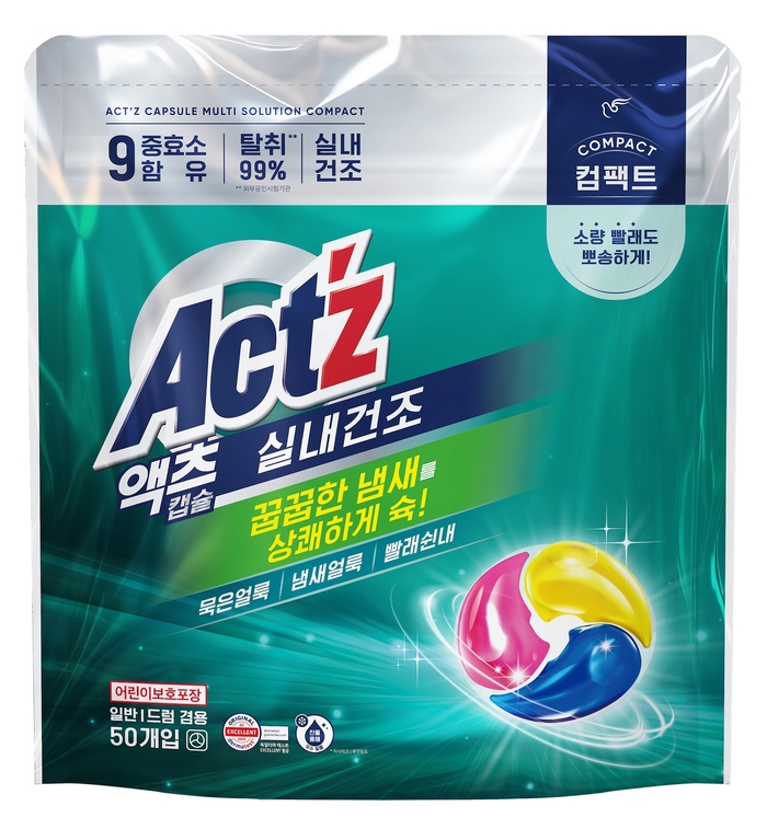 1인 가구에는 캡슐세제도 실용적인 선물이다. 1회 사용량이 정해져 있어 계량이 필요 없고 보관이 간편하다. 피죤의 ‘액츠 캡슐 실내건조 컴팩트’는 약 4kg 세탁량에 적합한 제품으로, 실내 건조 시 발생하는 꿉꿉한 냄새 제거에 도움을 준다. 찬물에서도 잘 녹는 수용성 필름을 적용해 잔여물 걱정을 줄였다.