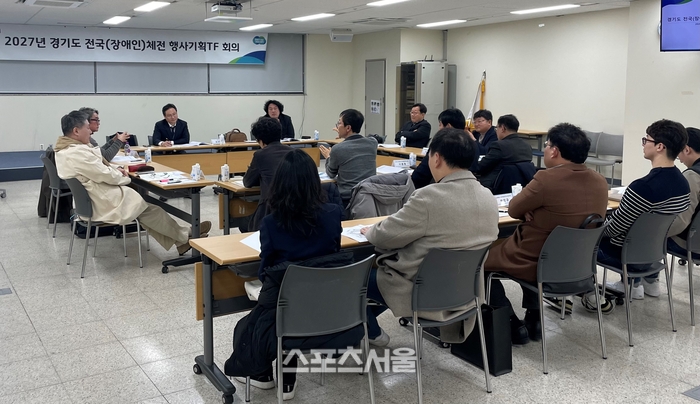 〔스포츠서울│수원=좌승훈기자〕경기도는 2027년 10월 도내에서 열리는 제108회 전국체육대회 및 제47회 전국장애인체육대회의 개·폐회식 연출을 위한 ‘전국체전 행사기획 TF(전담조직)’을 구성하고, 23일 화성시종합경기타운 대회의실에서 1차 회의를 가졌다.