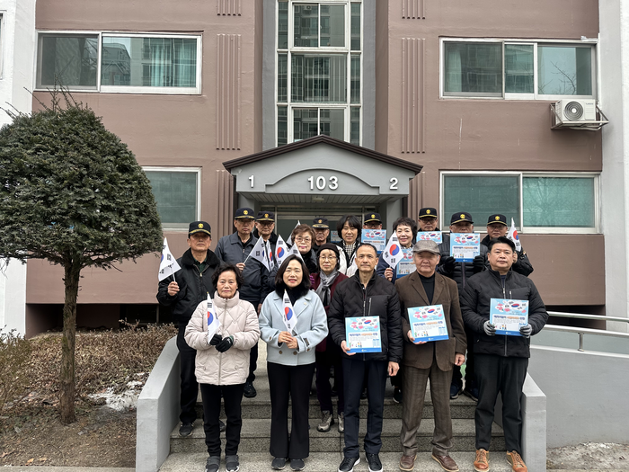 [스포츠서울ㅣ춘천=김기원기자]2월 24일 효자1동은 태극기달기 시범아파트 릴레이 현판식, 석사동은 태극기 달기 시범아파트 릴레이 현판식, 동산면에서는 3·1절 태극기 달기 캠페인을 실시했다.
