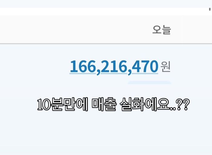 24일 홍영기는 자신의 SNS를 통해 “10분 만에 매출 실화에요?”라는 문구와 함께 매출 금액을 공개했다. 공개된 금액은 1억 6621만 6470원이었다.
