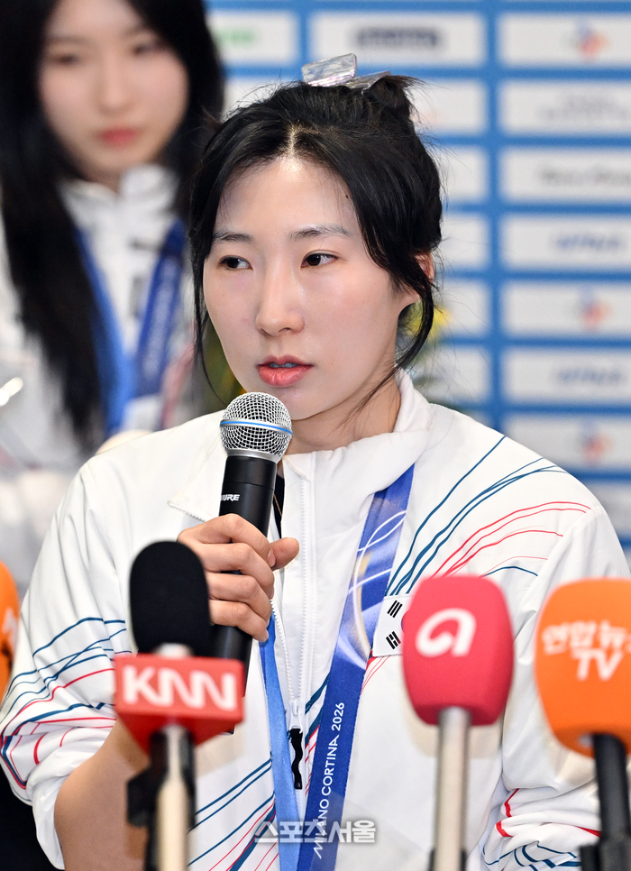 2026 밀라노·코르티나담페초 동계올림픽에서 쇼트트랙 여자 단체 금메달을 딴 이소연이 24일 인천국제공항을 통해 귀국한 뒤 소감을 밝히고 있다. 2026. 2. 24