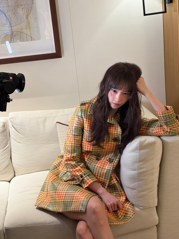 브랜드 특유의 체크 패턴이 돋보이는 옐로우와 그린 컬러 조합의 코트를 선택한 윤아는 특유의 맑은 이미지와 우아한 분위기로 완벽하게 소화했다.